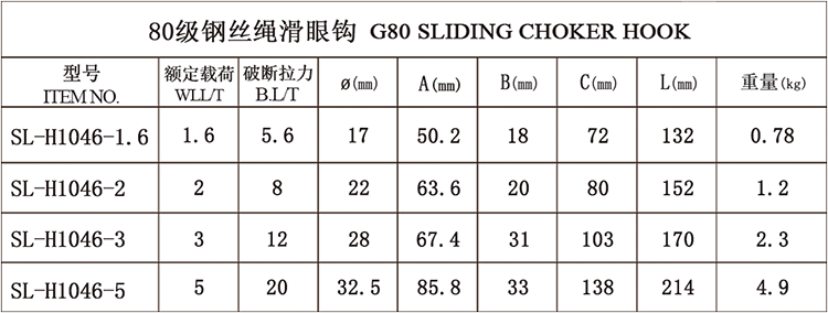 80级钢丝绳滑眼钩