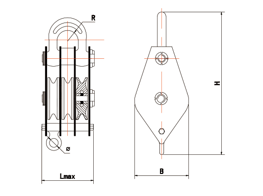 1、滑轮,采用精致铸钢轮,较之铸铁轮更加安全耐用。 2、合页,优质低碳合金钢锻造而成。并经过科学热处理,进而得到较高的综合强度和耐用度。 3、吊钩,经过精心设计,采用优质低碳